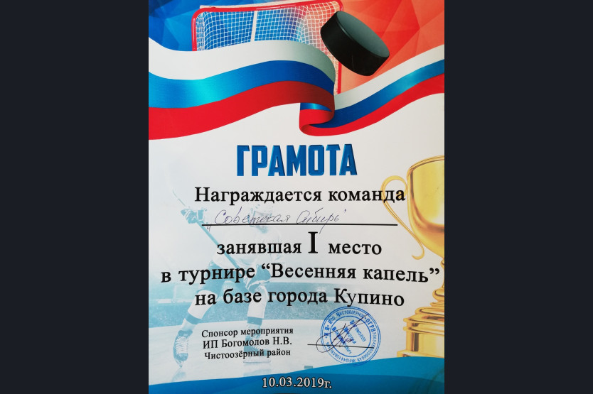 Здравствуйте. 10.03.2019 г. в г. Купино прошел турни по хоккею с шайбой "Весенняя капель".